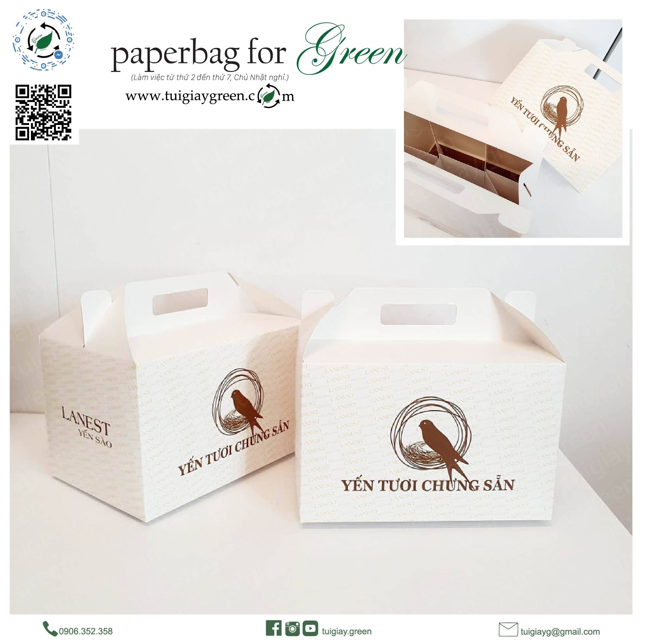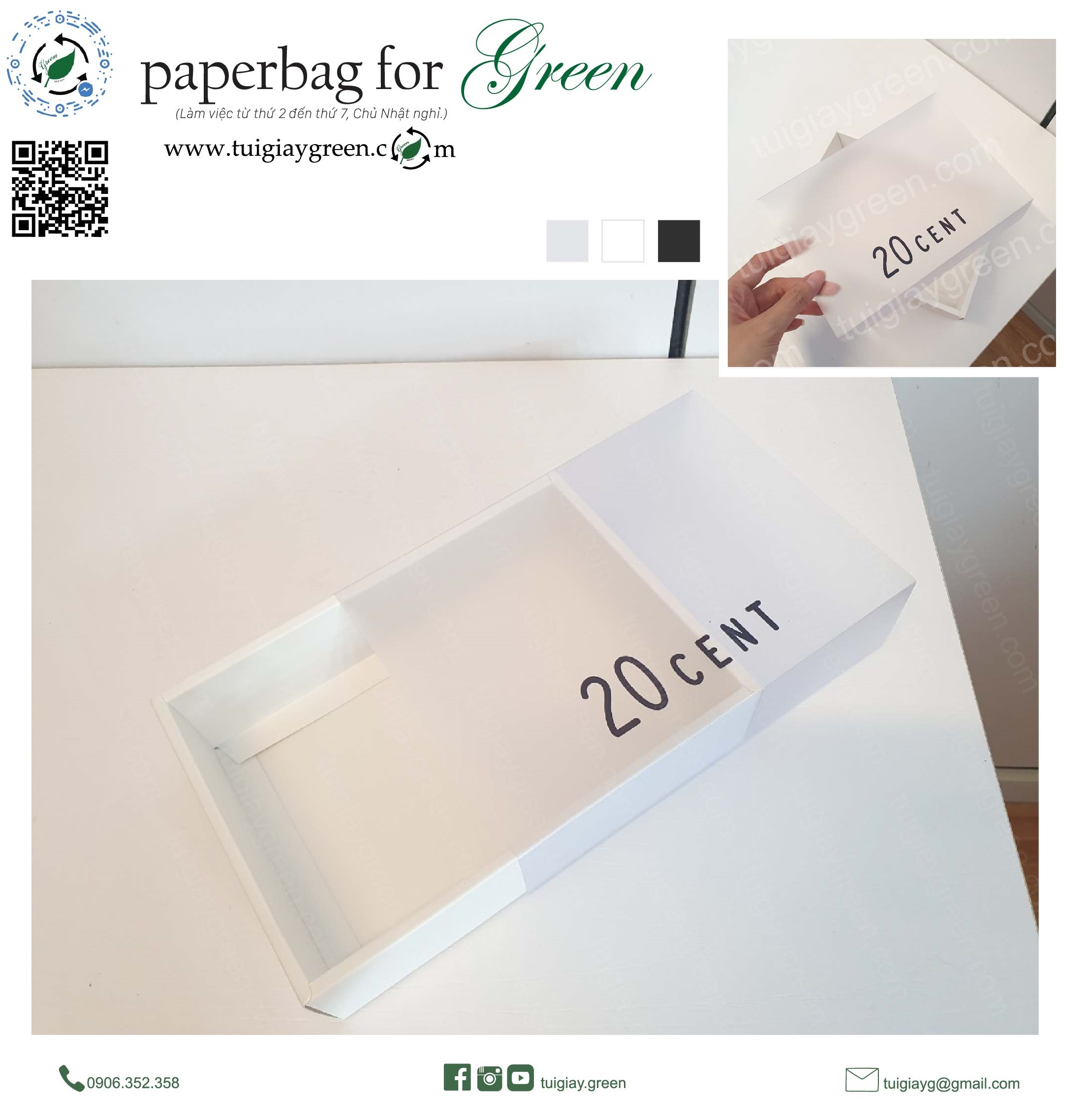 HỘP GIẤY HỘP GIẤY đa dạng mẫu theo yêu cầu khách hàng Chất liệu I 300gsm hoặc chất khác theo yêu cầu In logo riêng chỉ từ 10sp Hỗ trợ khách hàng hết mình : FREESHIP, FREE THIẾT KẾ , BẢO HÀNH sản phẩm, TRẢ GÓP 0%... YÊU CẦU TƯ VẤN Quý khách vui lòng điền bảng bên dưới để GREEN có thể tư vấn nhanh nhất ạ ! TÊN KHÁCH HÀNG SỐ ĐIỆN THOẠI ( ZALO ) SỐ LƯỢNG MÀU Kraft nâu Khác Ivory 300gsm in nhiều màu SIZE IN KHÔNG IN IN 1 MÀU IN NHIỀU MÀU YÊU CẦU HÌNH ẢNH MẪU ( nếu có ) Send